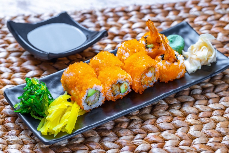 (nori, rice, avocado, Philadelphia cheese, shrimp tempura).